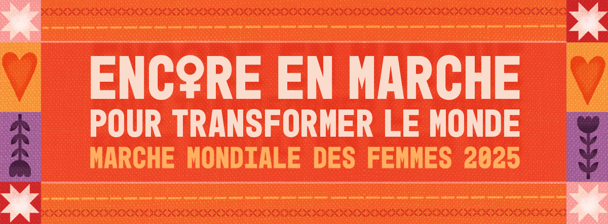 Maintenant que le lancement de la Marche mondiale des femmes vient d'être effectué, nous sommes ravies de vous dévoiler le visuel qui soutiendra notre mobilisation et nos prises de paroles jusqu'au grand rassemblement de la 6e action de la Marche mondiale des femmes au Québec. Ce visuel, portant notre thème "Encore en marche pour transformer le monde" est le résultat de nombreuses réflexions. Nous avons voulu créer une image qui non seulement représente notre thème, mais qui incarne également les valeurs et les luttes qui nous animent.
